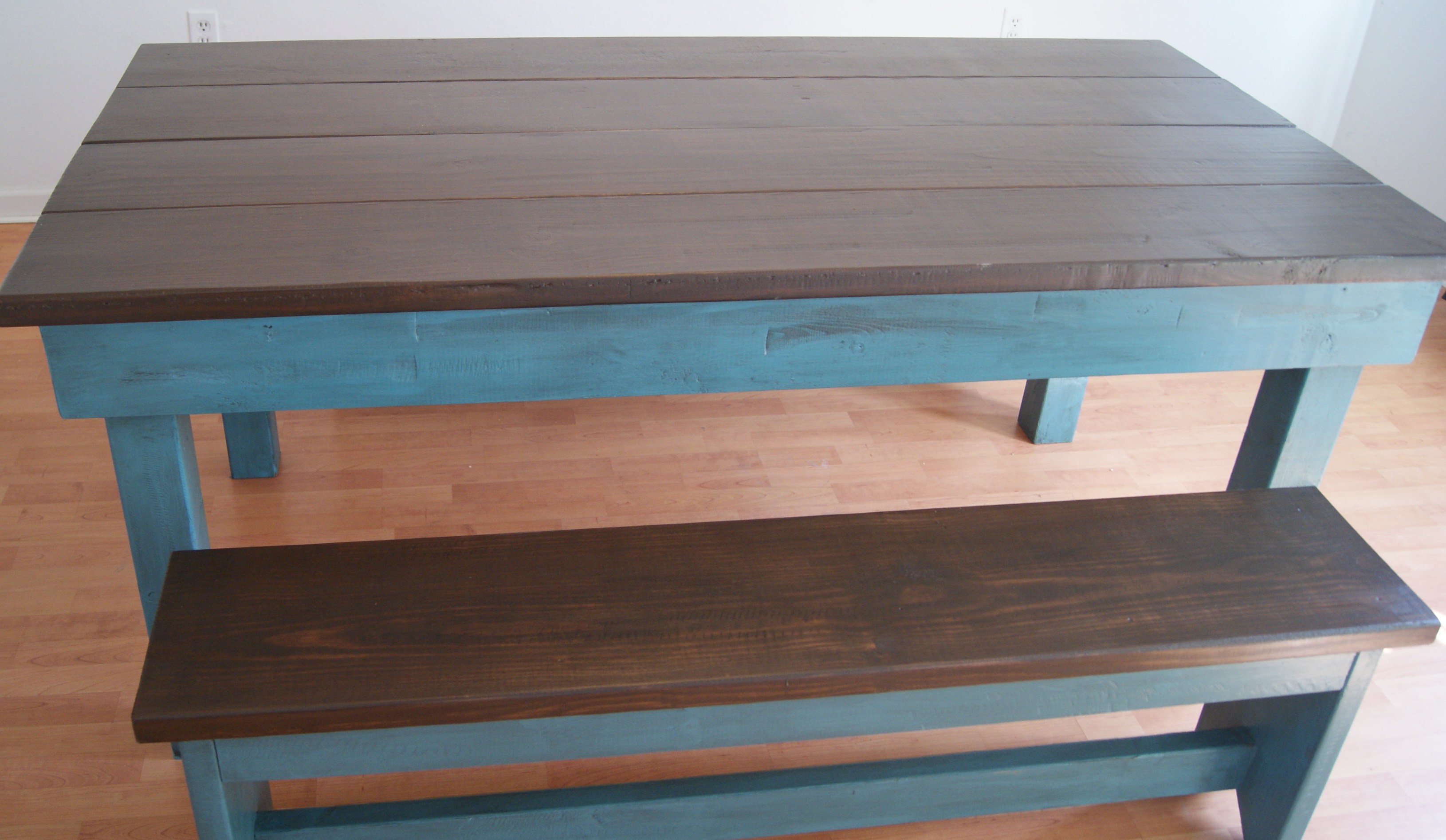 Primitive bench in blue glaze. Rustic Handmade Bench, Shabby Chic Finish